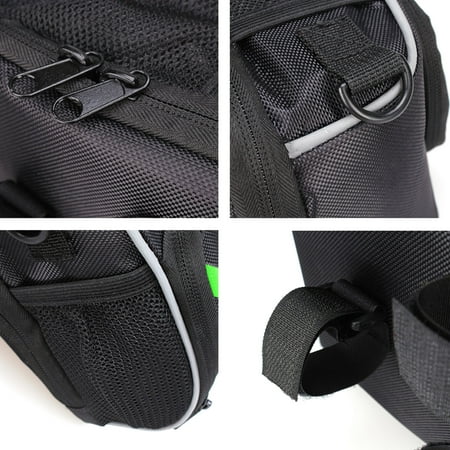 Features: Special design Bicycle front basket bag is equipped with zipper and many small pockets, easy to store all kinds of riding things. Large capacity Top frame handlebar bag with the size of 15*11*9cm/5.9*4.32*3.54inch, 3.8L large capacity is very suitable for riding lovers. Multifunctional Bike front head bag is equipped with a shoulder strap which can be used as a diagonal bag or a waist bag. Material Convertible bike bag is made of polyester and nylon, strength and stability, fine and smooth, anti-corrosion and anti-oxidation. Wide application Bike front head bag is very suitable for outdoor activity, such as travel, camping, fishing and riding. Specifications: Type: bicycle front basket bag Material: nylon+polyester Color: black Capacity: 3.8L Size: 15*11*9cm/5.9*4.32*3.54inch(L*W*H) Weight: 175g/6.17oz