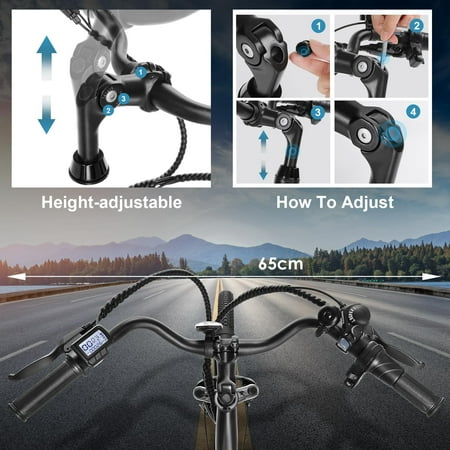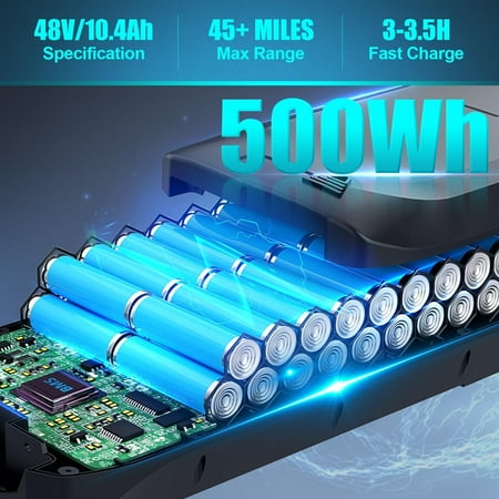 Product Highlights: Low-slung and easy rolling electric bike with 4 working modes. 350W/Peak 500W Motor 48V 10.4Ah Battery 7 Speed Transmission Dual Disc Brakes UL 2849 Certified Specifications: Battery Capacity: 48V 10.4Ah, 500Wh Motor: 350W (500W Peak) Fast Charge Time: 3-3.5H Max Speed: 19.8MPH (Pure battery power) Mileage Per Charge: Up to 60 miles Working Modes: Walk Assist, Pure Electric, Pedal Assist(5Levels), Bicycle Mode Cruise Control: Yes Gears: 7-Speed Gears Digital Display: Battery level, current speed, mileage, etc. Suspension: Front Fork Tire Size: 26″ * 1.95″ Lights: Front & Rear Lights Reflector: Front & Rear Reflector Bicycle Weight: 61Ibs / 27.7kg Load Capacity: 265Ibs / 119.8kg Recommeded Hight: 5’4″-6’5″ Recommeded Age: 16+, Adults Item Package Dimensions:56.3 x 25.98 x 9.84 inches Material:Aluminum Suggested Users:unisex-adult Package Content: 1 x Electric Bicycle 1 x Charger 1 x Rear Rack 1 x Instruction 1 x Removable Lithium-Ion Battery 1 x Tools Bag(Screwdriver, Wrench, Allen Key etc.) 2 x Keys